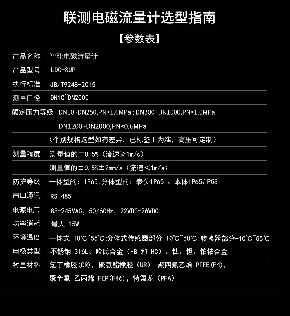 聯測儀表LDG-SIN分體式智能電磁流量計污水廢水防腐防水耐高溫