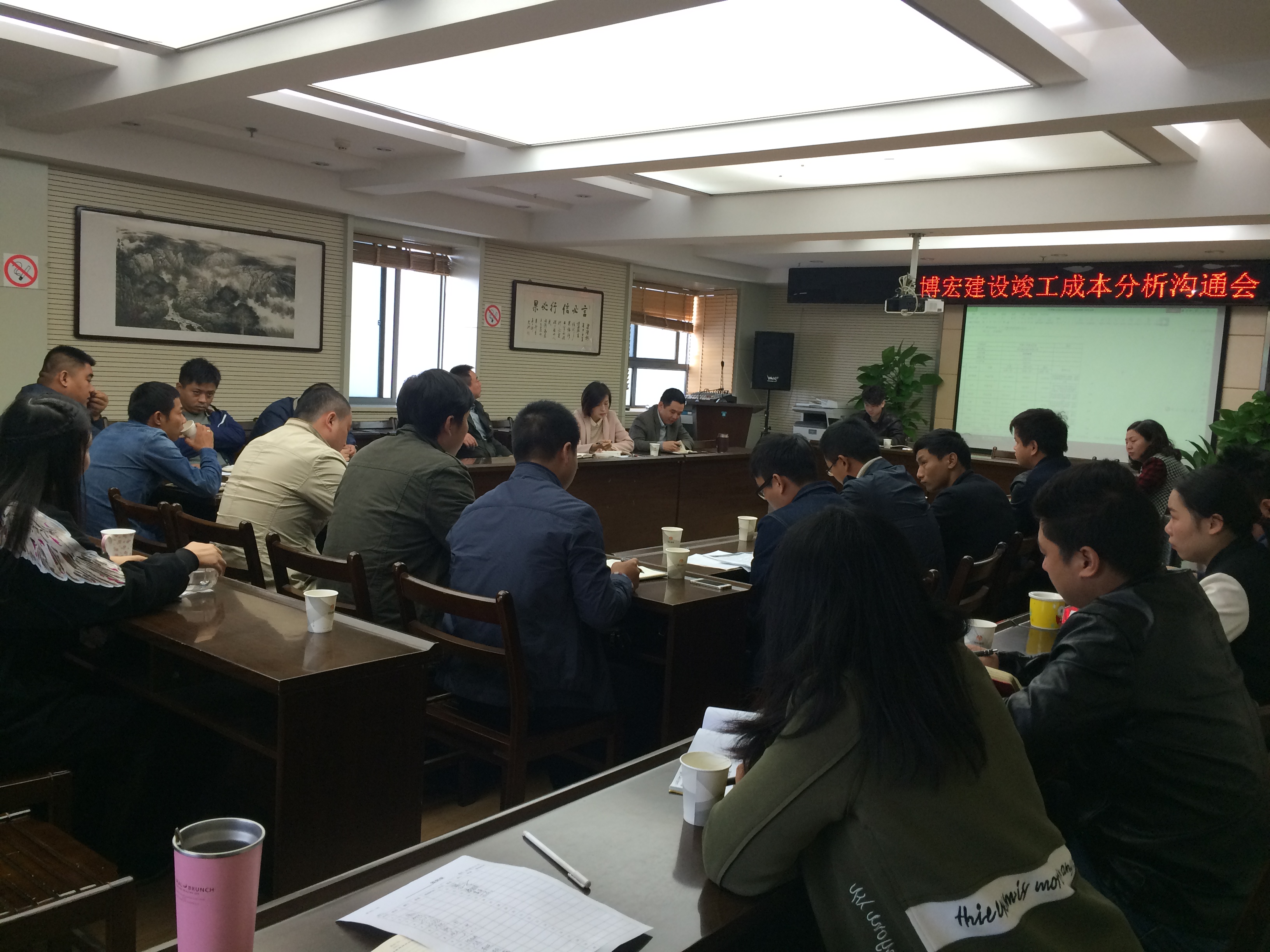 為了進一步促進成本、合同、結算管理工作,博宏公司造價部于2016年10月27日上午9點在公司會議室召開悅城、芳草小學等7個項目的成本分析會,總經(jīng)理、支部書記、全體項目經(jīng)理、預算員以及造價部全體人員參加了本次會議。