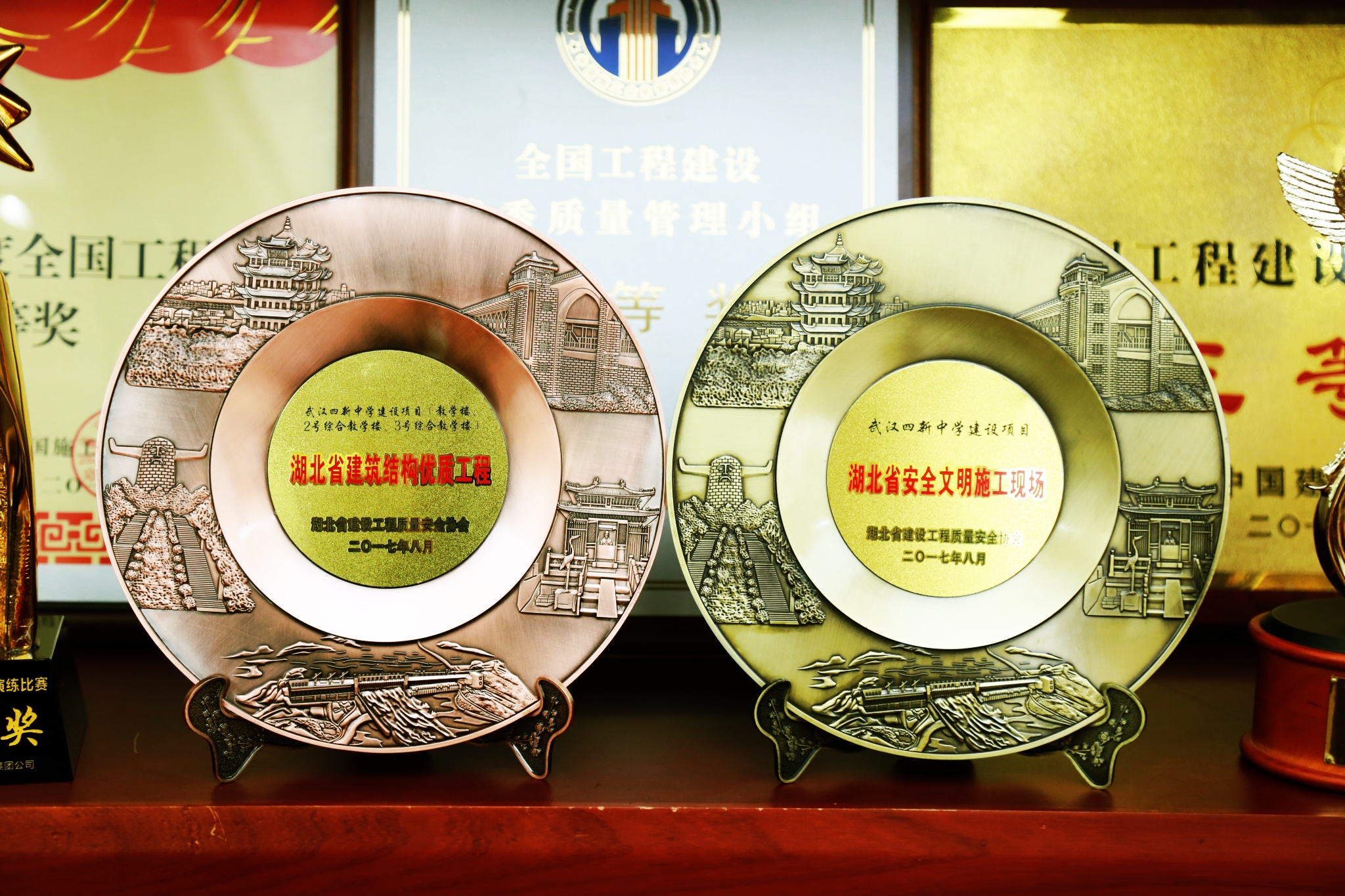 2017年10月11日,武漢四新中學建設項目憑借過硬的建設品質及完善的文明施工管理手段,同時獲得了由湖北省建設工程質量安全協(xié)會為其頒發(fā)的“湖北省建筑結構優(yōu)質工程”(2016-2017年度第三批)及“湖北省安全文明施工現(xiàn)場”(2017-2018年度第一批)雙項獎章。