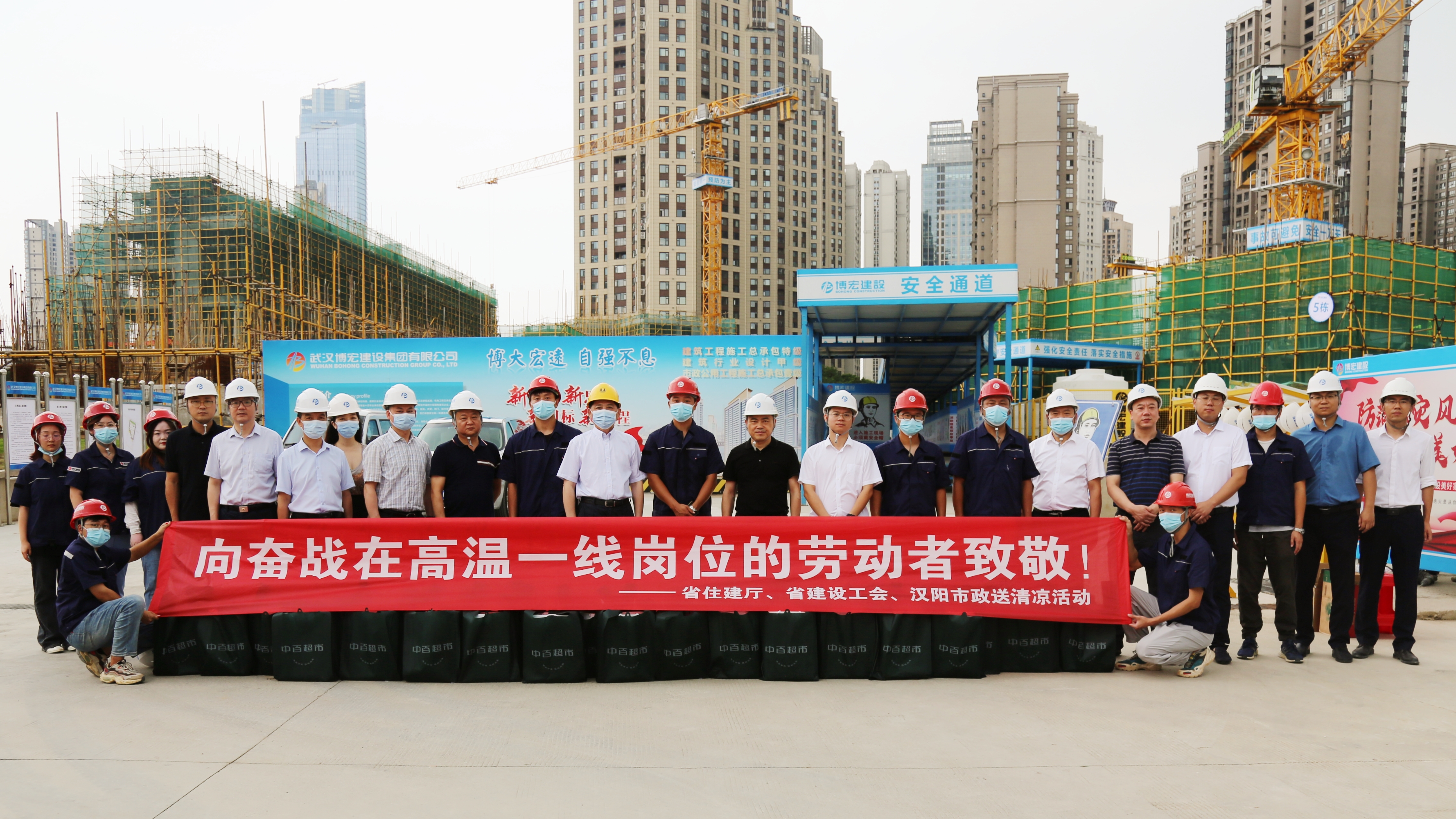烈日炎炎,酷暑當(dāng)頭。近日,武漢地區(qū)高溫預(yù)警不斷拉響。為確保武漢城市建設(shè)有序進(jìn)行,全體博宏人堅(jiān)守崗位、揮灑汗水、不辭辛勞,奮戰(zhàn)在項(xiàng)目一線。7月28日上午10點(diǎn)整,湖北省住建廳黨組成員、副廳長金濤,住房保障處處長阮斌,房地產(chǎn)市場建管處處長康忠榮,建設(shè)工會主任賴濤等領(lǐng)導(dǎo)一行走訪慰問博宏建設(shè)集團(tuán)新建居住、商業(yè)項(xiàng)目(月湖船院),漢陽市政黨委書記、董事長嚴(yán)悌文,副董事長虞志鵬,武漢城建集團(tuán)黨委委員、副總經(jīng)理邢榮斌等陪同調(diào)研,共計(jì)10余人參加了活動。
