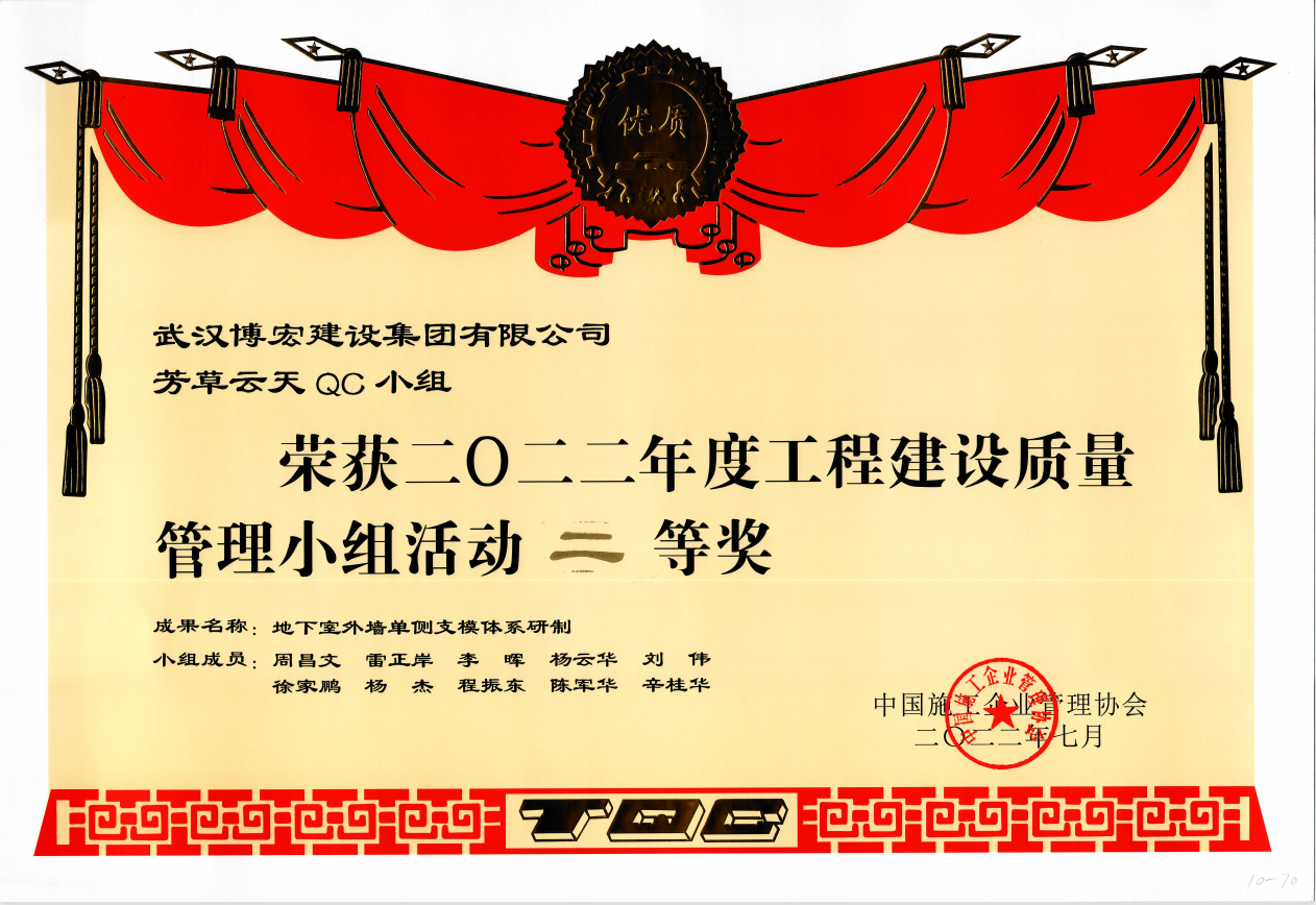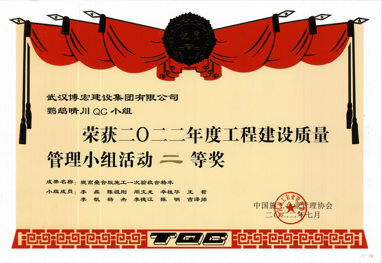 近年來,公司成立了多個QC小組,積極參與公司技術研發(fā)工作,以技術創(chuàng)新提升市場核心競爭力,努力打造新的增長極。目前,我司的QC小組課題始終堅持問題導向原則,緊扣技術創(chuàng)新、施工生產、質量管理等重點、難點問題,積極開展QC小組攻關,并參與各級協(xié)會組織的QC競賽活動,獲得省I類成果9項、II類成果5項、III類成果4項,其中1項成果榮獲武漢建筑業(yè)協(xié)會QC銀獎。