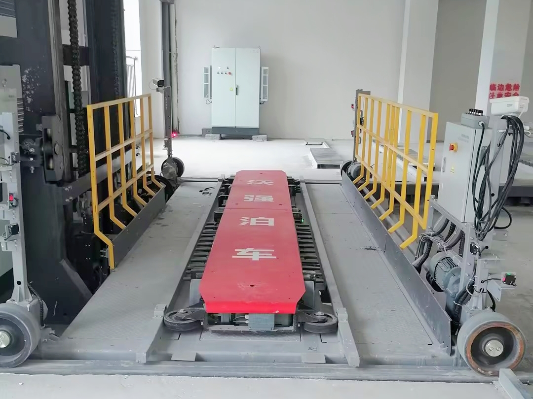 惠民苑社區(qū)服務(wù)中心改造工程EPC項(xiàng)目配備有地上6層的平面移動(dòng)型車庫,共有127個(gè)車位,由轉(zhuǎn)盤、端部升降機(jī)、橫移臺(tái)車和梳齒搬運(yùn)器等設(shè)備組成完整的停車系統(tǒng)。轉(zhuǎn)盤設(shè)置在出入口車廳內(nèi),可實(shí)現(xiàn)汽車的轉(zhuǎn)向功能;端部升降機(jī)設(shè)置在車庫內(nèi)部巷道的側(cè)邊,可實(shí)現(xiàn)車輛的豎直提升功能;橫移臺(tái)車設(shè)置在升降機(jī)內(nèi),可實(shí)現(xiàn)車輛的橫向搬運(yùn)功能;梳齒搬運(yùn)器設(shè)置在橫移臺(tái)車內(nèi),采用電機(jī)驅(qū)動(dòng)行走輪實(shí)現(xiàn)汽車縱移運(yùn)動(dòng),具有運(yùn)行平穩(wěn)、承載能力強(qiáng)的特點(diǎn);車庫總控制設(shè)備設(shè)置在一層監(jiān)控室內(nèi),用于所有停車機(jī)電設(shè)備的控制和調(diào)度。