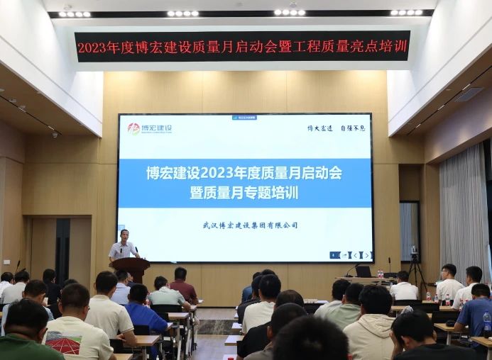 今年9月是第45個全國質(zhì)量月,為全面貫徹黨的二十大精神,落實《質(zhì)量強國建設(shè)綱要》部署,促進(jìn)質(zhì)量強國建設(shè)。9月15日下午,博宏建設(shè)舉辦以“增強質(zhì)量意識,推進(jìn)質(zhì)量發(fā)展”為主題的2023年質(zhì)量月啟動會暨工程質(zhì)量亮點培訓(xùn),黨委書記、董事長、總經(jīng)理鄒勇,總經(jīng)理助理李暉,質(zhì)量管理部部長、市內(nèi)外各項目部負(fù)責(zé)人及質(zhì)量崗位人員共計101人線上線下同步參與活動。