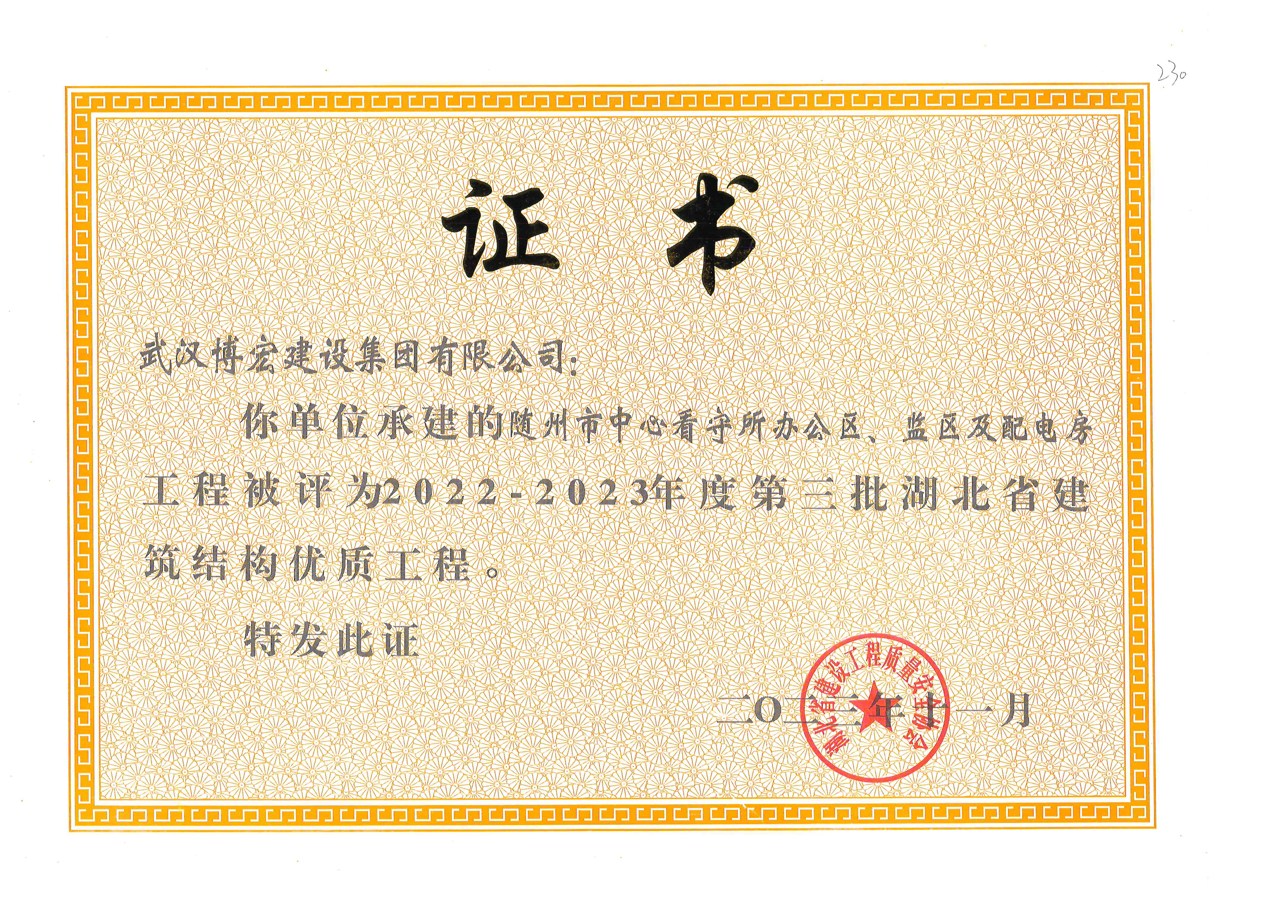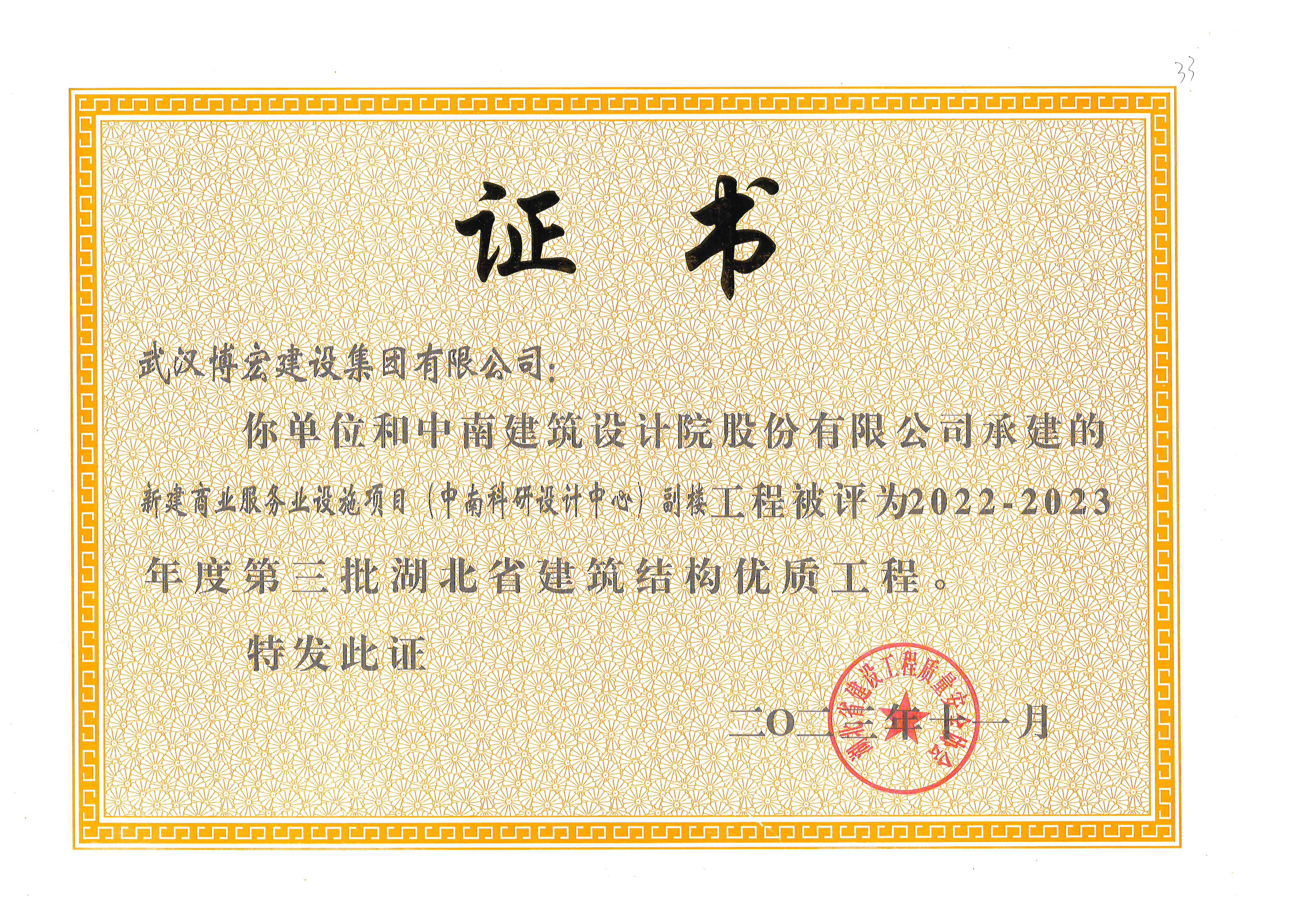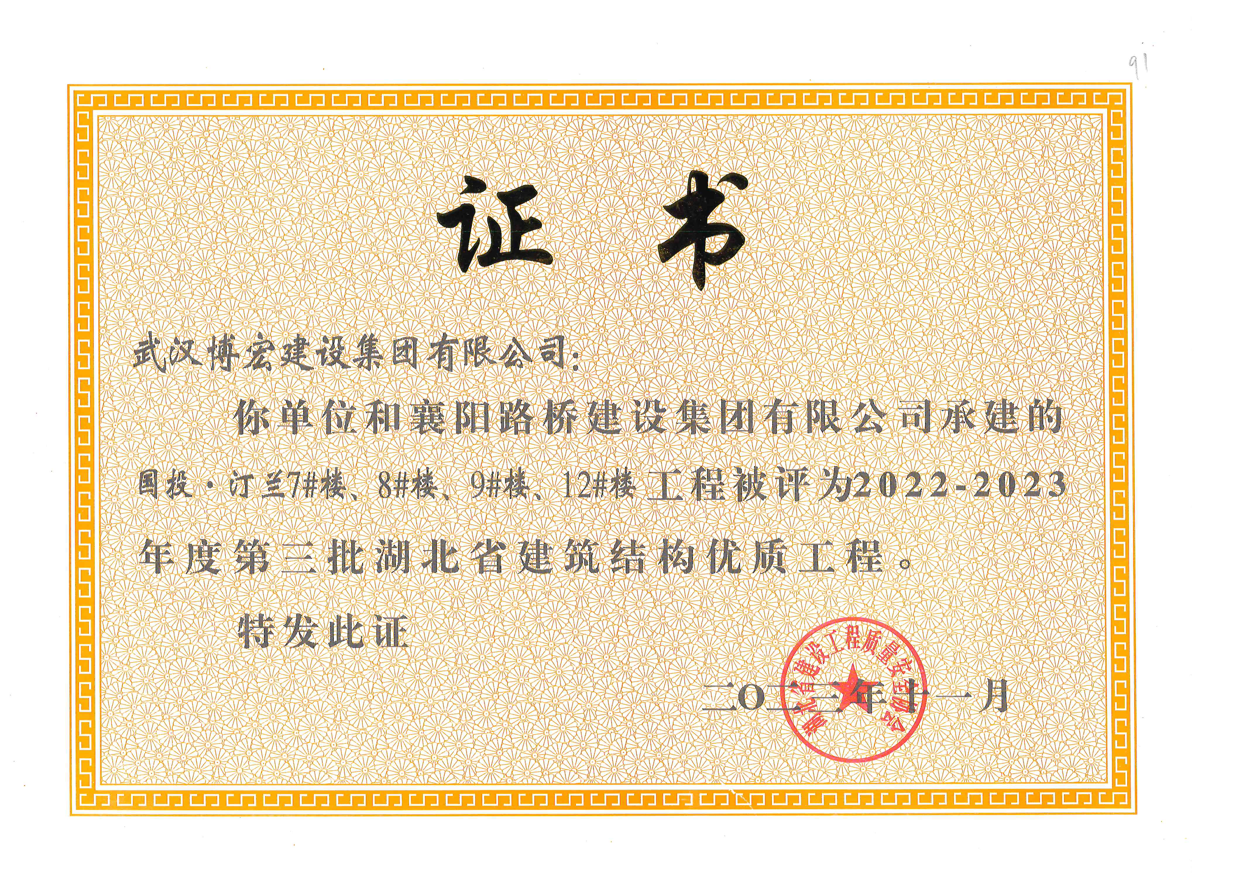 近日,湖北省建設(shè)工程質(zhì)量安全協(xié)會公布2022-2023年度第三批湖北省建筑結(jié)構(gòu)優(yōu)質(zhì)工程項目名單,由博宏建設(shè)集團(tuán)承建的居住項目(黃金口村還建房B地塊)17#樓,居住項目(四臺村還建房B地塊)1#樓,新建商業(yè)服務(wù)業(yè)設(shè)施項目(中南科研設(shè)計中心)副樓,商業(yè)、商務(wù)設(shè)施、居住項目(產(chǎn)權(quán)調(diào)換房)3#樓、6#樓,國投·汀蘭7#樓、8#樓、9#樓、12#樓,隨州市中心看守所辦公區(qū)、監(jiān)區(qū)及配電房榮獲湖北省建筑結(jié)構(gòu)優(yōu)質(zhì)工程獎。