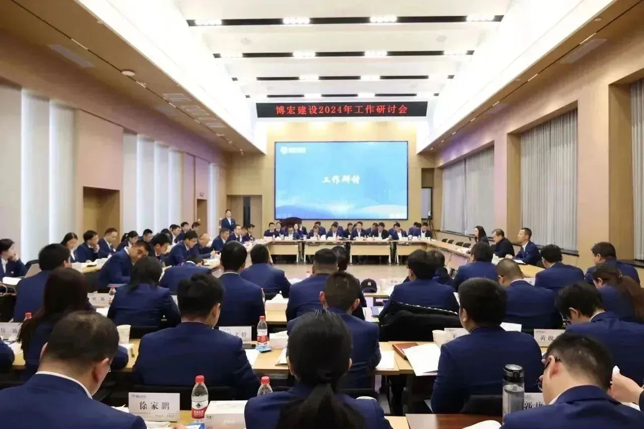 1月26日-27日,博宏建設(shè)2023年工作總結(jié)暨2024年工作研討會(huì)在公司31樓會(huì)議室隆重召開。公司黨委班子、部門負(fù)責(zé)人、項(xiàng)目經(jīng)理和員工代表共84人參加會(huì)議。漢陽市政黨委書記、董事長嚴(yán)悌文受邀出席會(huì)議。會(huì)議由公司黨委副書記郭一清主持。