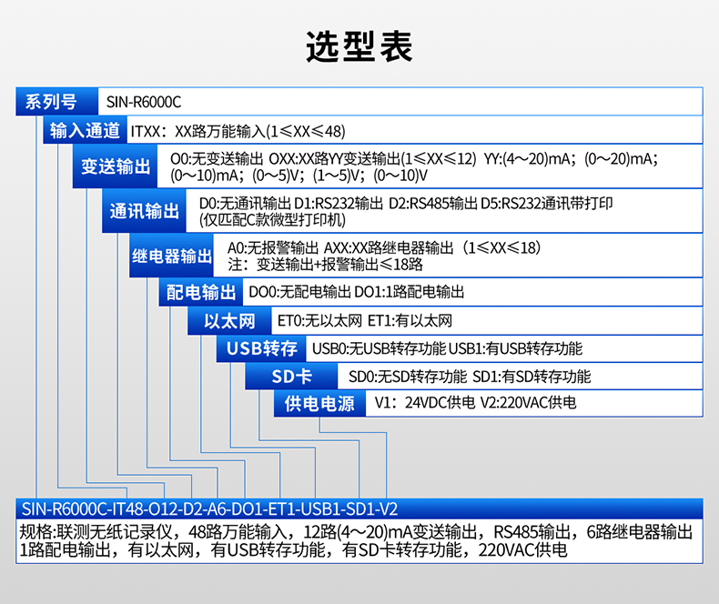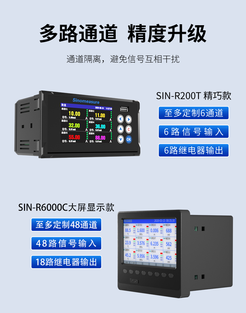 SIN-R6000C系列彩色無紙記錄儀48路萬能輸入,可帶18路報警輸出,12個變送輸出,RS232/485通訊接口,以太網接口,微型打印機接口和USB接口,SD卡插座;可提供傳感器配電;具有強大的顯示功能,實時曲線顯示,歷史曲線追憶,棒圖顯示,報警列表顯示。
