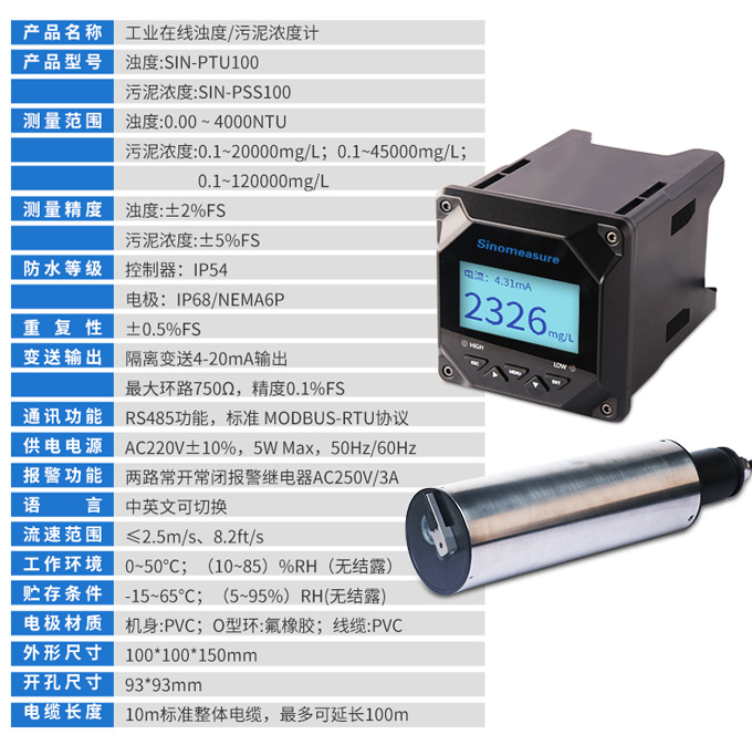 SIN-PTU100在線濁度檢測儀是一款智能在線化學分析儀器之一,基于組合紅外吸收散射光線法的原理,應用ISO7027方法可以連續并精確地測定濁度或污泥濃度,可以普遍應用于污水廠、自來水廠、水站、地表水、工業等領域濁度監測。