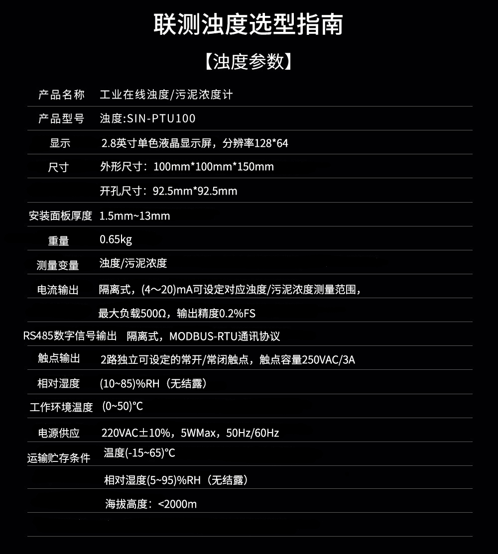 應用行業 聯測SIN-PTU100在線濁度分析儀內置微處理器,適用于于污水廠、自來水廠、水站、地表水、工業等領域濁度監測。